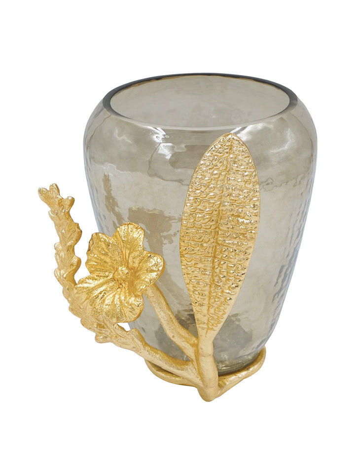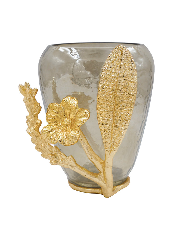Tumbler Silver, Gold Finished Aluminum & Textured Brown Luster Glass With Flower