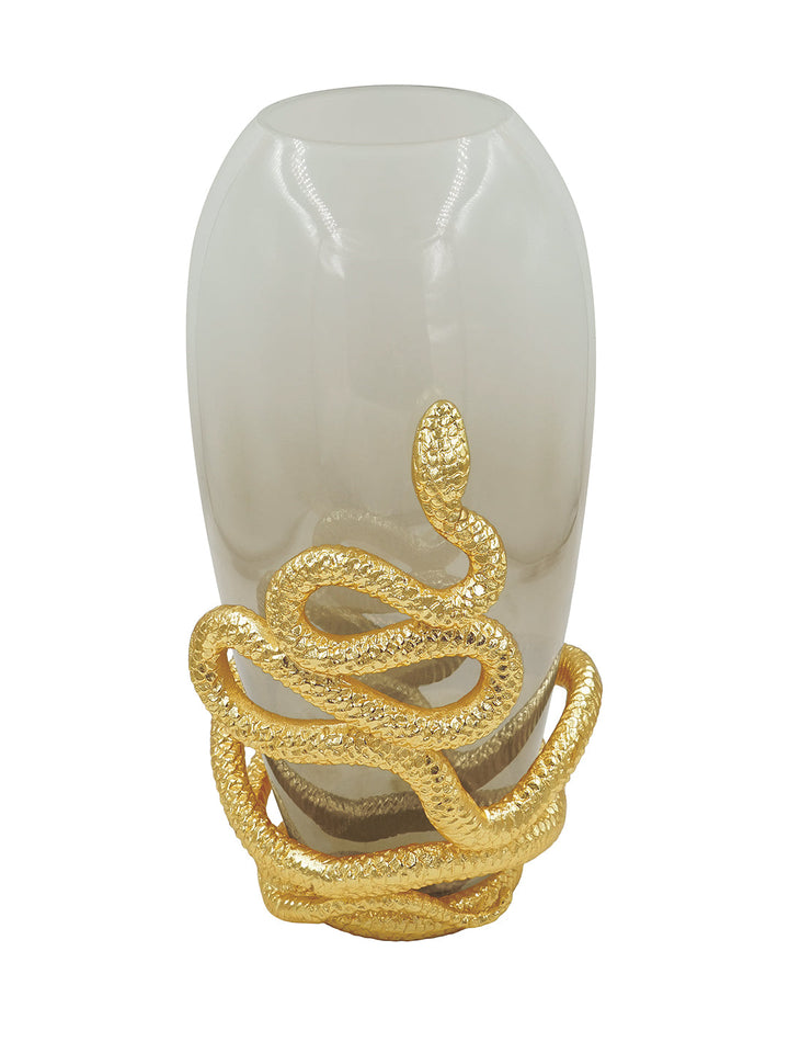 Vase Serpent Gold Finished Aluminum With Gradient White And Brown Luster Glass