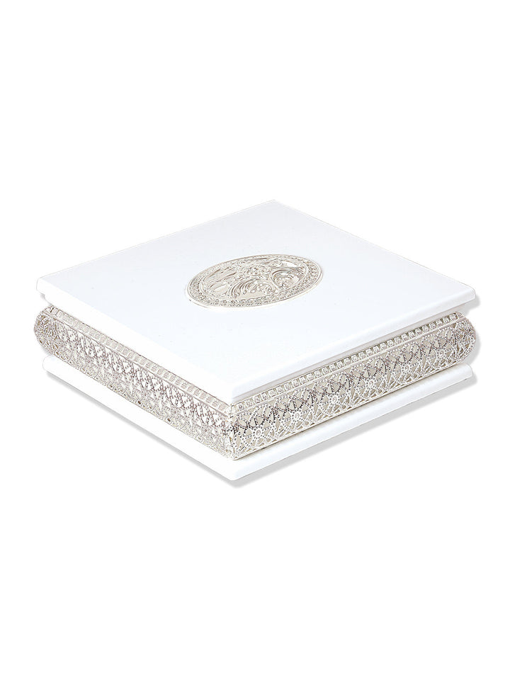 This white silver box is a vintage collection masterpiece finished by highly professional team of professionals.It can be used for keeping jewellery, favorite pictures, chocolates etc. Keeping things in it will never damage your valuables. Best choice for gifting as well.